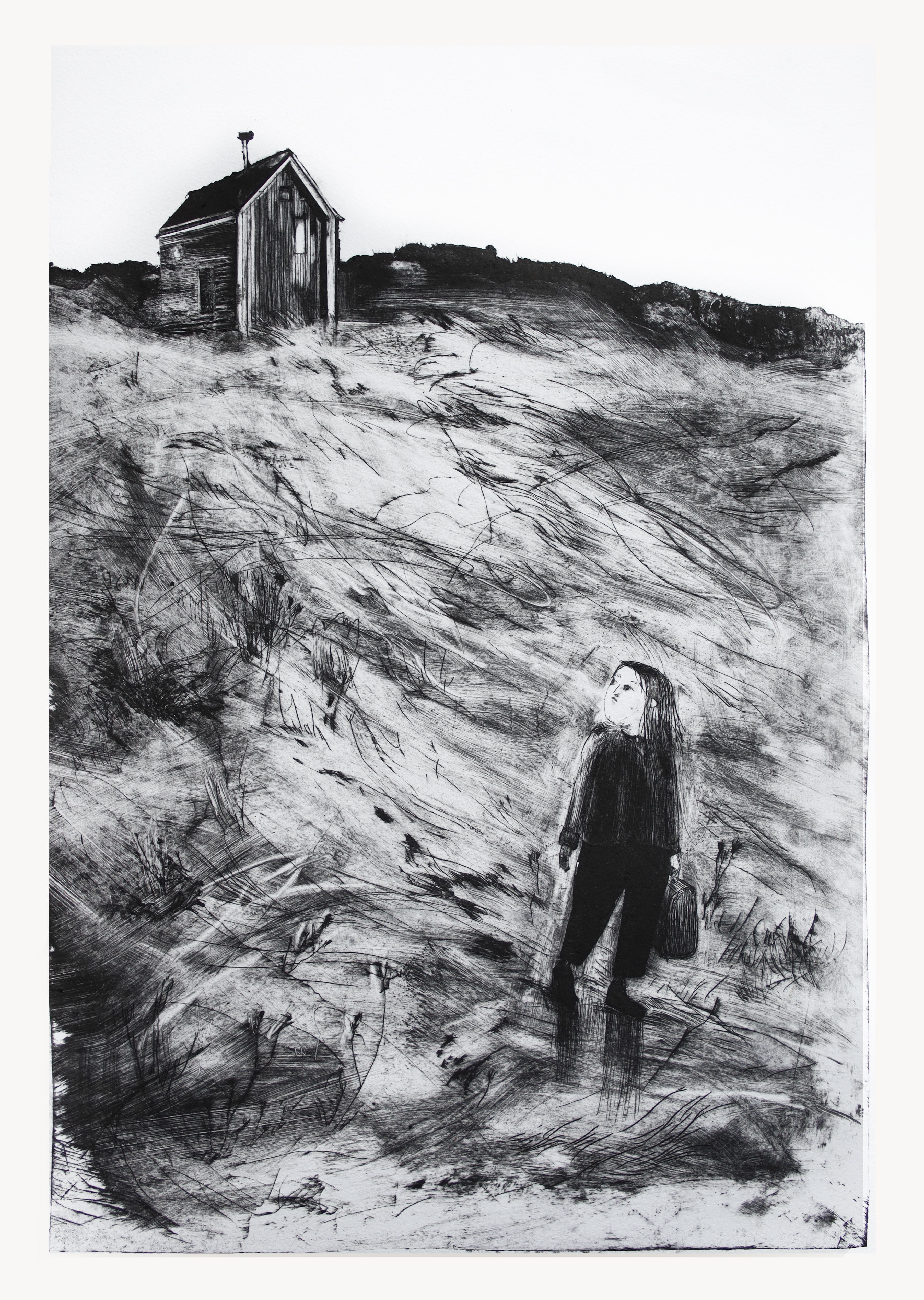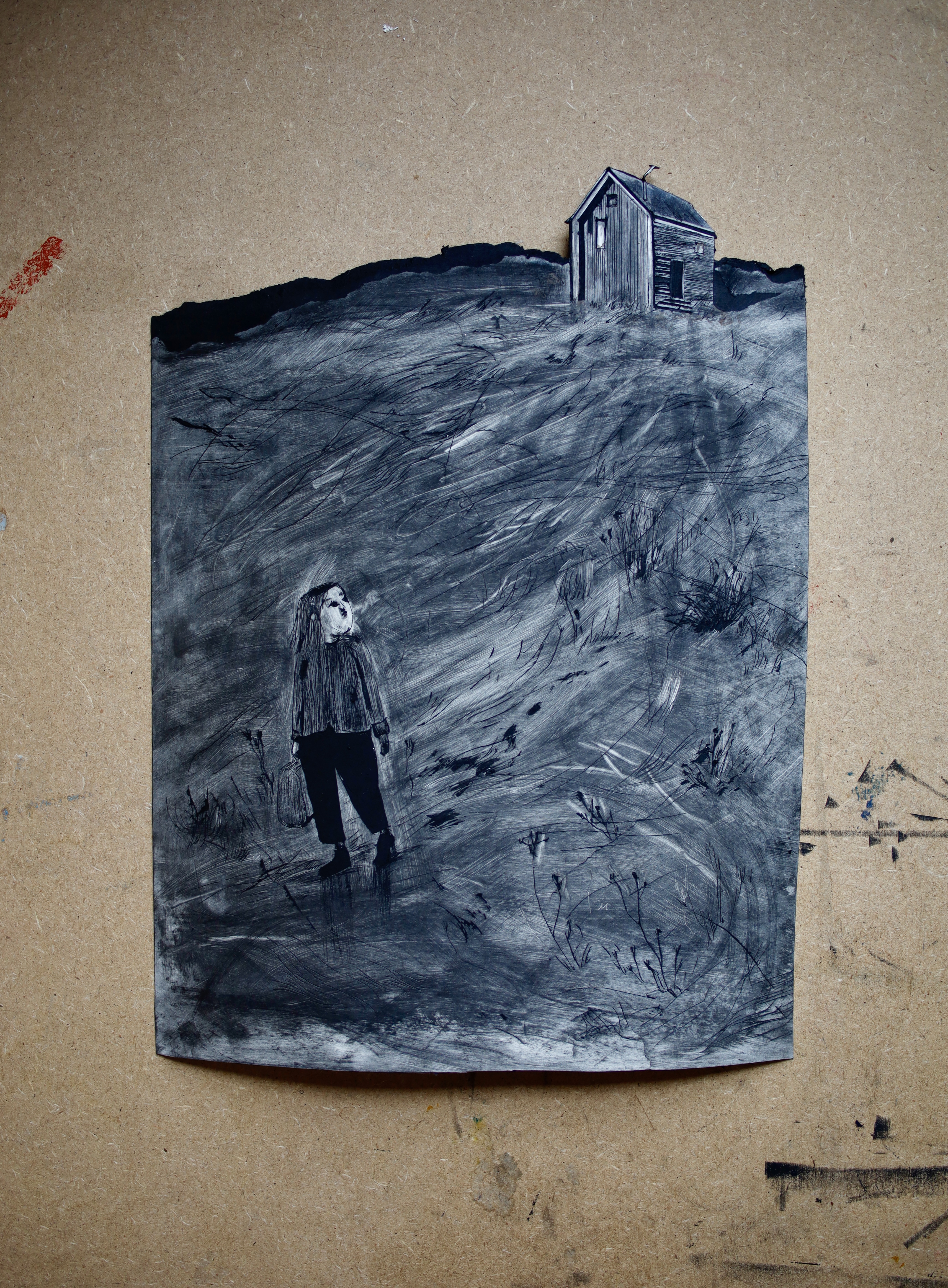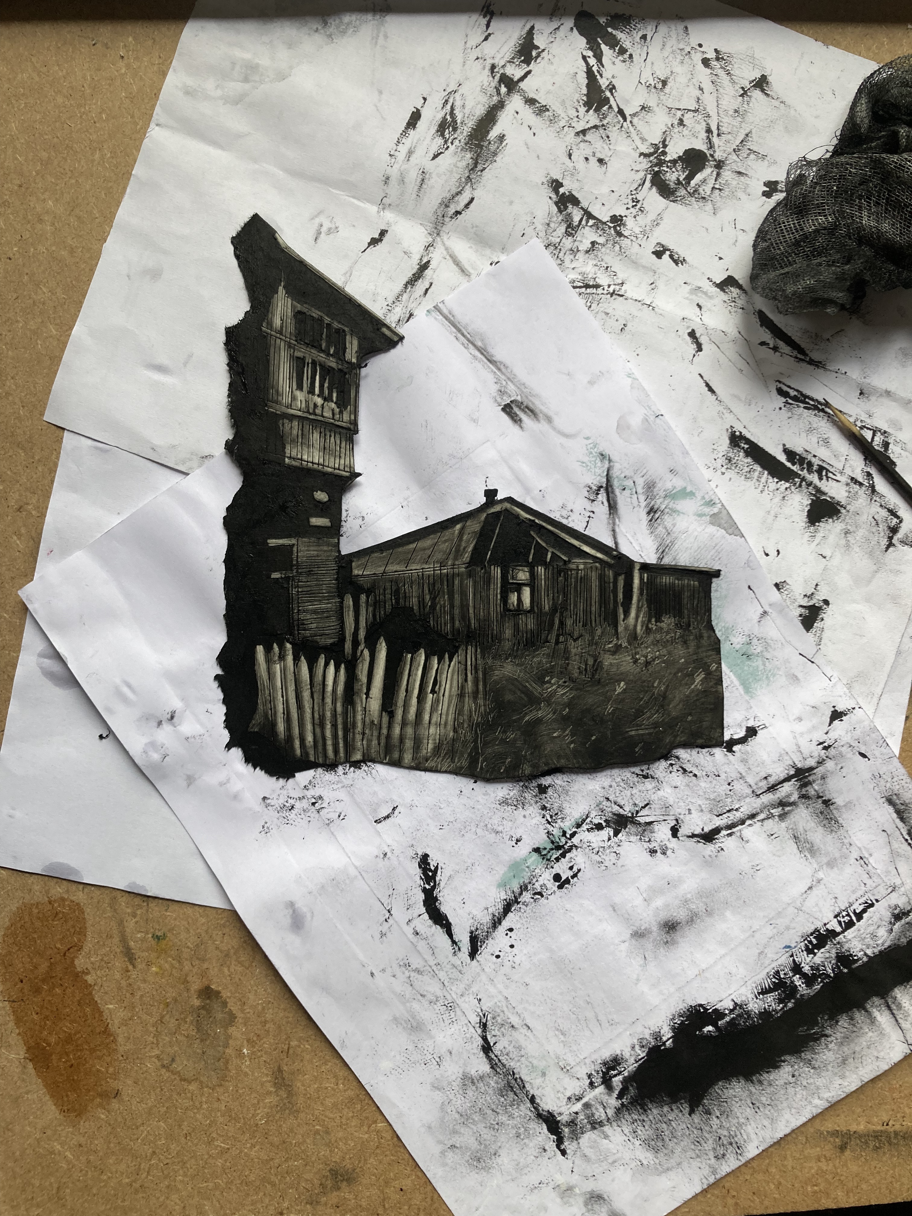 И то и другое! Я очень хотела поработать с сухой иглой, ведь в Ля Жашер есть офортный станок. В резиденции я попробовала использовать новый материал, который напоминает по структуре тетрапак, но без заломов. А когда пробуешь что-то новое, нужно время, чтобы понять, как это работает.