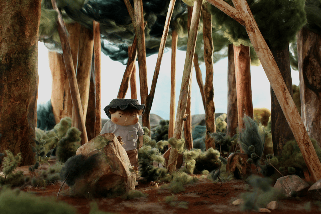 En ce qui concerne les visuels et le développement, les designs des personnages ont beaucoup évolué. Au départ, ils étaient en aquarelle sur papier … puis en papier découpé sur banc-titre … puis en papier découpé avec laine feutrée pour les cheveux ! Et puis maintenant, pour finir, en volume papier mâché et laine feutrée. À l’image du scénario, j’ai dû chercher sous plusieurs angles la justesse visuelle qui leur correspondait. Le choix du papier et la laine a été fait pour la richesse de leur texture à l’écran. Ils apportent une douceur et une fragilité visuelle qui accompagnent parfaitement la tension du sujet.