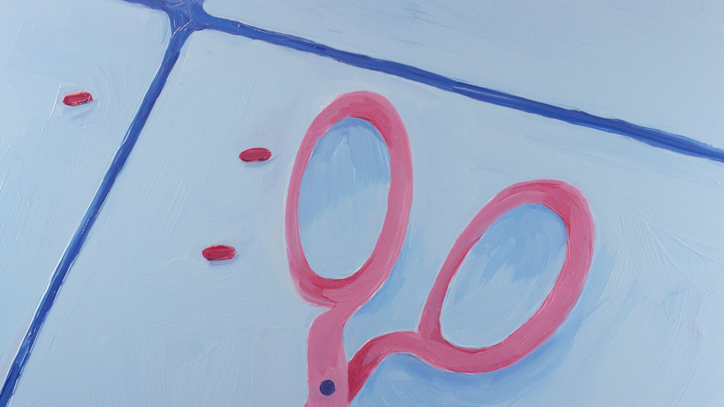 Pastel gras, fusain, pellicule grattée et huile sur verre ; tu as exploré de nombreuse techniques pendant tes deux semaines de résidence ! Mais la peinture sur verre semble avoir largement gagné tes faveurs. Qu’est-ce qui t’as le plus plu dans cette technique ?
