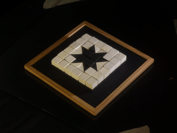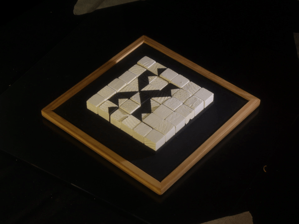 Effectivement. Mais mon processus s’inscrit à l’intérieur de contraintes formelles assez fortes, qui rendent cette liberté supportable. Par exemple, le plateau de cubes noirs et blancs m’impose une grille invariable, une gamme de motifs limitée, et un nombre restreint de pièces. Le jeu, c’est de composer des variations à l’intérieur de ces règles strictes et arbitraires. Je dirais que cette rigueur canalise mon élan de recherche, voire m’aide à l’emmener le plus loin possible.