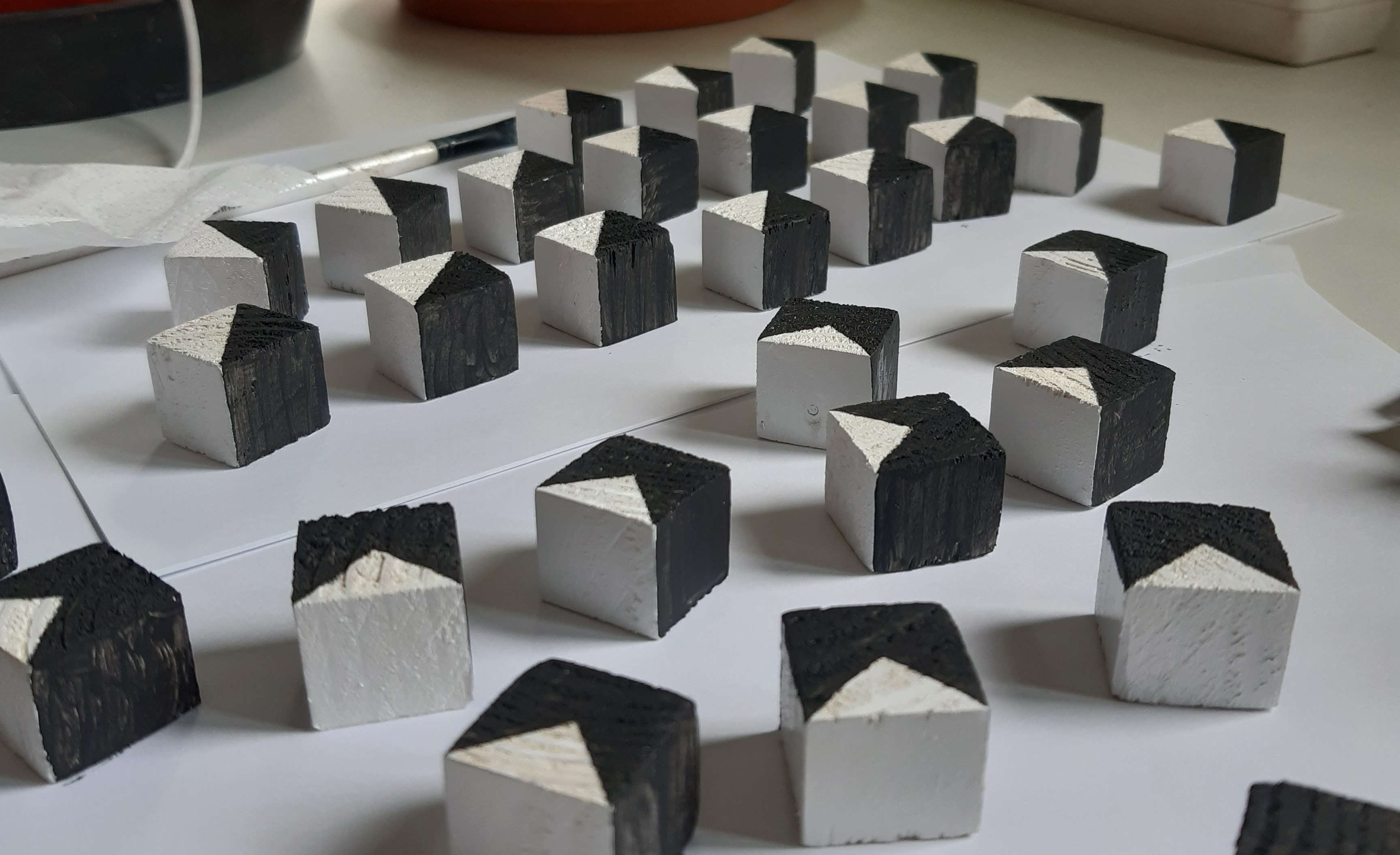 Disons que j’avais plusieurs démangeaisons ! À force de remplir ces grilles, plusieurs idées dérivées de ce principe de génération de motif et de pavages ont commencé à émerger, que j’ai regroupées sous le titre « La Règle des Jeux » ; j’en ai exploré certaines dans le carnet, mais au fur et à mesure, j’ai senti que mes idées de mouvement sur papier commençaient à tourner un peu en rond, et surtout que j’avais envie d’amener cette idée vers ce que j’aime le plus : le volume et la manipulation sous caméra. L’idée c’était donc de « gratter » toutes ces démangeaisons, et d’essayer d’aller au bout de ces intuitions-là.