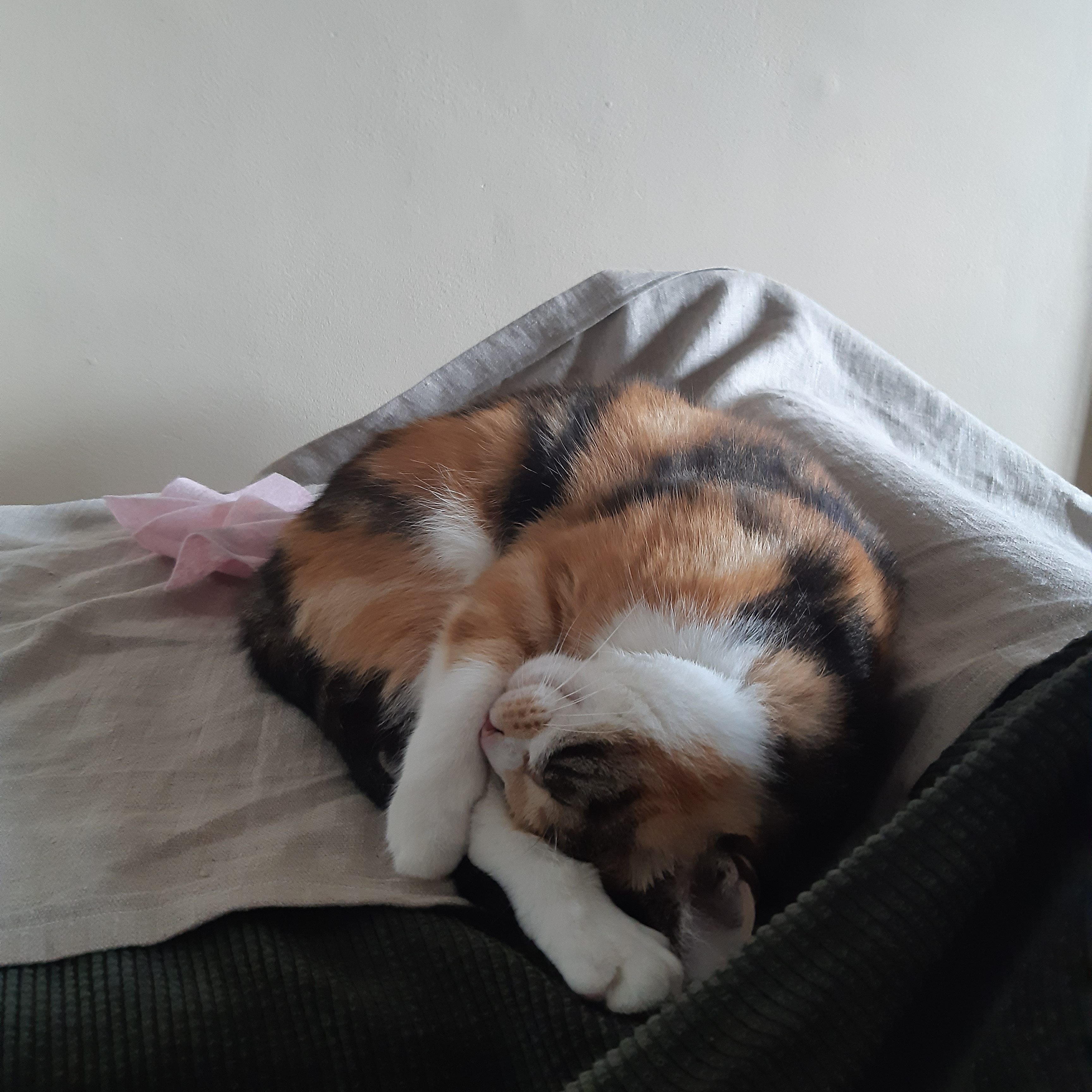 aaaa J’ai été tributaire de son bon vouloir : lorsqu’elle dort sur la presse, je ne peux évidemment rien faire d’autre que lui faire un petit bisou entre les oreilles et chercher autre chose à faire le temps que le distributeur de croquettes fasse son boulot et qu’elle daigne me laisser la place. En effet, j’ai pour maxime de ne jamais importuner un chat qui dort. Et en même temps, je pense qu’elle est une de mes plus belles rencontres de 2023, c’est une chatte formidable, intègre.