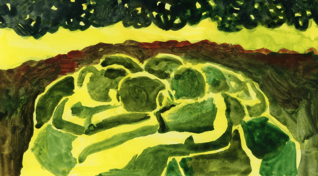 Juliette : On est arrivées à la Jachère avec l’envie d’écrire un scénario qui nous plaise et réaliser de nouvelles images, peut-être trouver l’identité du film ? On eu l’occasion de faire quelques tirages en monotypes qui nous ont beaucoup plus et de faire des peintures à la gouache et à l’aquarelle. C’était super d’avoir un cadre aussi paisible pour prendre le temps de développer ce genre d’images, ça nous a permis d’imaginer le film d’une tout autre manière !