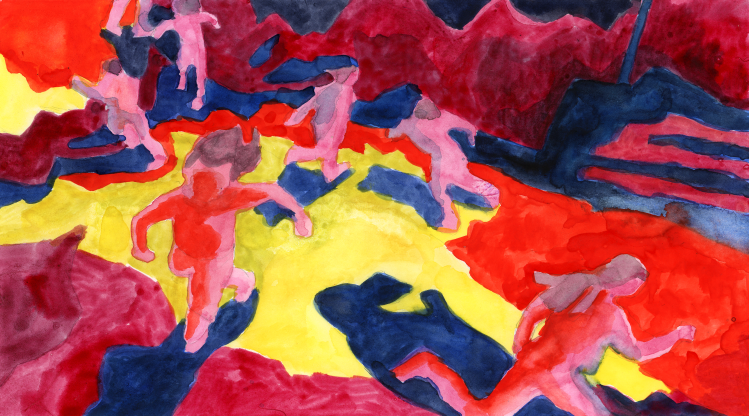 Léna : Ça faisait plusieurs mois qu’on essayait, en vain, de bloquer un long temps de travail pour ce projet de film. Ce n’est pas évident de coécrire un scénario. Il nous manquait une contrainte de temps pour revenir un peu à l’énergie initiale de ce qu’on voulait faire. Ici, on a pu regarder beaucoup de films, lire des livres, dessiner et à la fin des deux semaines, on avait bien avancé sur l’écriture et choisi de réaliser le film en peinture animée sur papier.