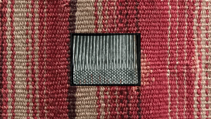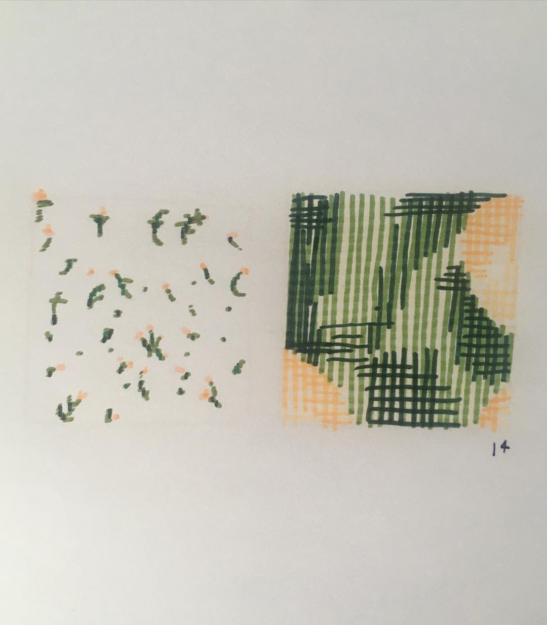Le second, c’est la trame. Une tapisserie, c’est une image composée de petits points de fils colorés… et une image d’animation, elle est composée de petits points appelés pixels. J’ai dessiné des quadrillages, des dessins par lignes horizontales et verticales. Je compte poursuivre ces expérimentations sur ordinateur.