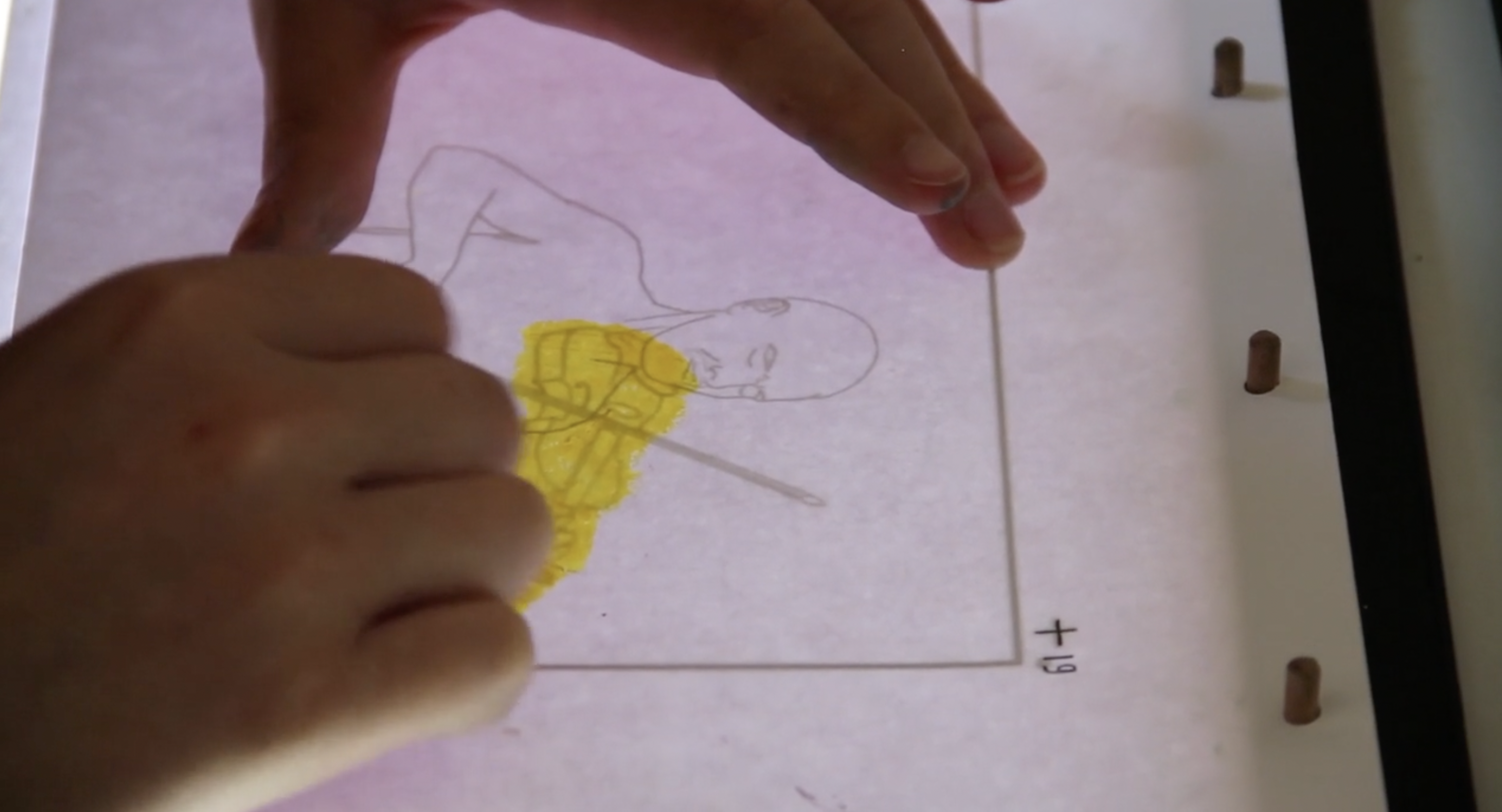 Oui, j’avais déjà préparé un plan en rotoscopie, je voulais profiter de la résidence pour trouver la façon d’animer la pastel qui me plairait le plus et voir si ce que j’avais en tête était faisable.